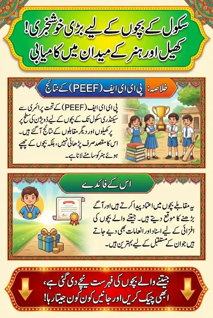 The Division-Level Position Holders’ Results in Sports and Co-Curricular Activities under PEEF represent a meaningful step toward balanced education. By recognizing student talent across primary, middle, and secondary levels, the program reinforces the importance of all-round development.