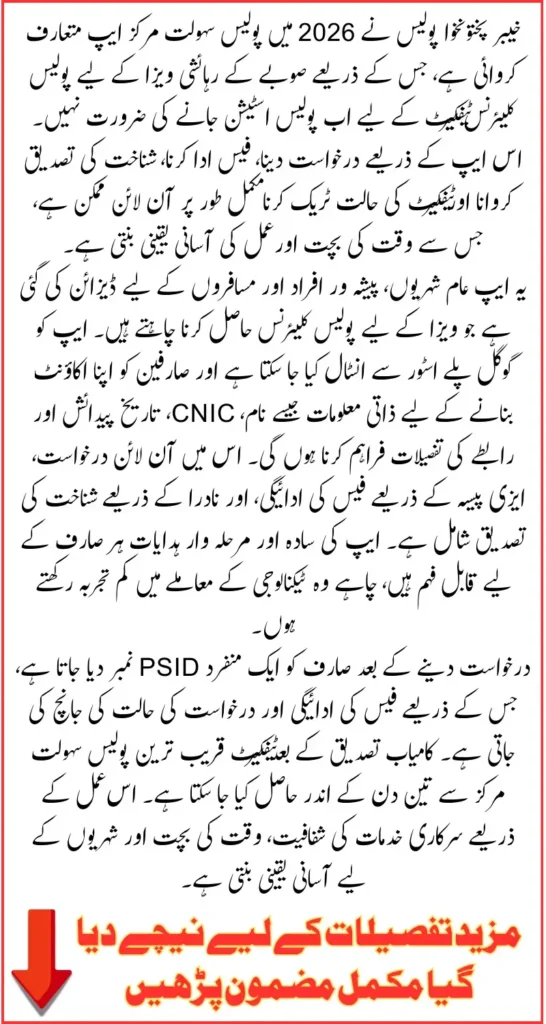 By following the step-by-step guidance, applicants can complete the application, pay fees, verify identity, and collect certificates smoothly. This initiative reflects KP Police’s commitment to leveraging technology for citizen-friendly services.